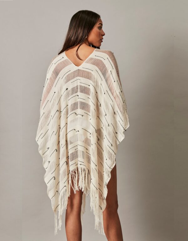 Hidden pockets on the sides and large hood. Knitted by hand in manual machine in pure alpaca blended with 1 ends of Caraveli wool (89% alpaca + 11% polyamide)